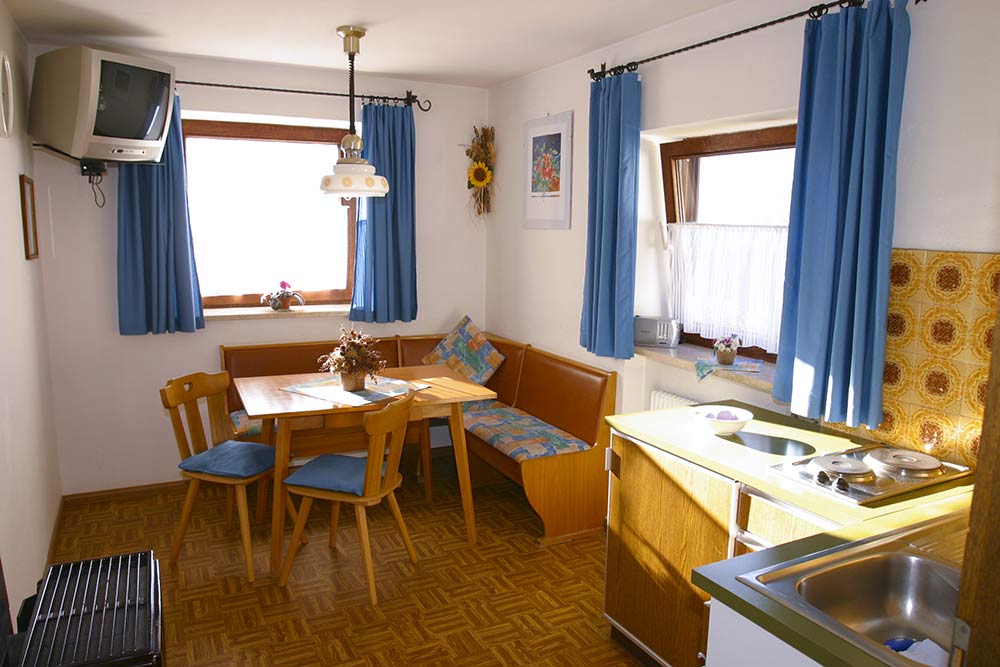 si trova nel maso conservato secondo la tradizione. Troverete una cucina abitabile ben attrezzata con cucina a legna, forno, macchina per caffè e frigorifero, TV satellitare, radio; asciugamani e canovacci da cucina sono disponibili. Nella stube tirolese avrete inoltre la possibilità di riscaldare con la tradizionale stufa. I reparti notte, giorno e cucina sono separati e sono ideali per famiglie da 2 a 5 persone, 90 m². Dormite tranquilli e rigenerate il vostro corpo e l’anima con l’aria sana di montagna. Le stanze sono in parte rivestite in legno. Prendetevi il tempo per ammirare lo splendido panorama e la vista delle montagne della Val Senales. Il bagno è dotato di bagno-doccia e WC. Gli asciugamani sono a vostra disposizione.